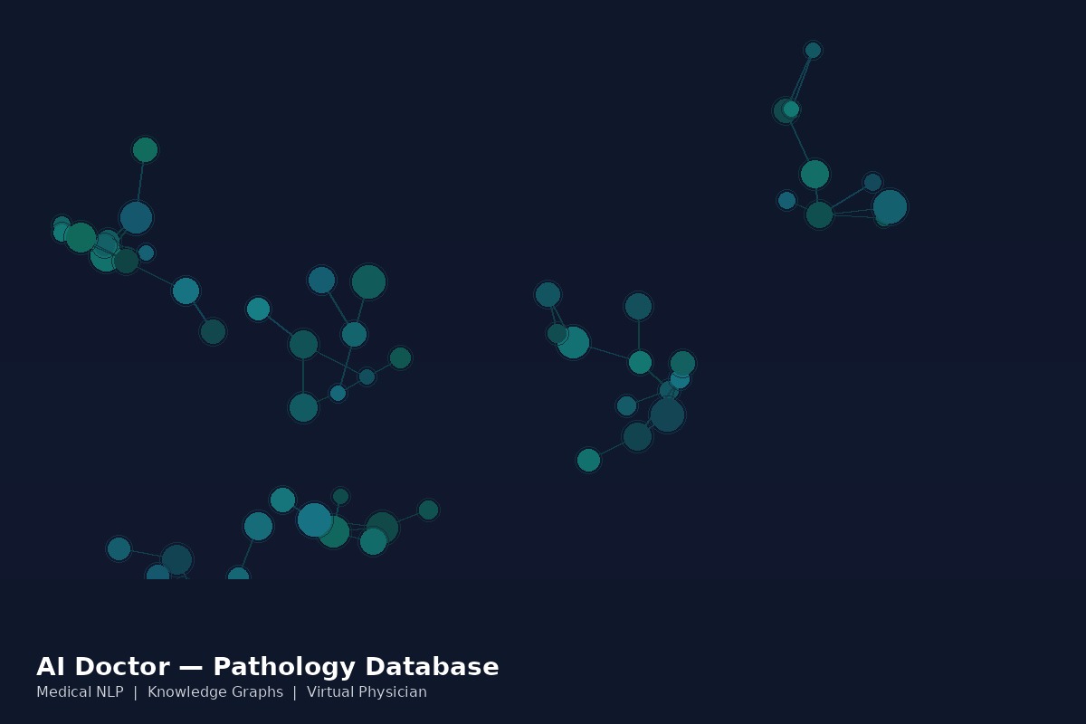 Medical Knowledge Graph — a structured database of medical relationships extracted from pathology data, enabling the AI to reason about connections between symptoms, diagnoses, and treatments rather than simply pattern-matching on text.